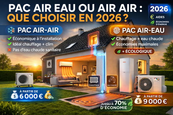 PAC air eau ou air air que choisir en 2026 14 Février 2026 🏠 PAC air eau ou air air : que choisir en 2026 ?